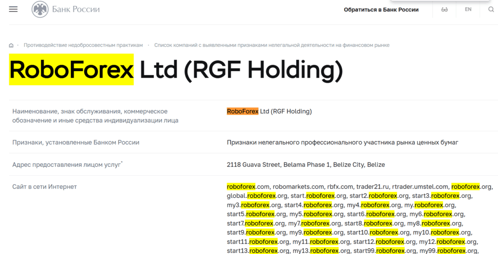 Главная опасность RoboForex: отсутствие лицензии ЦБ РФ